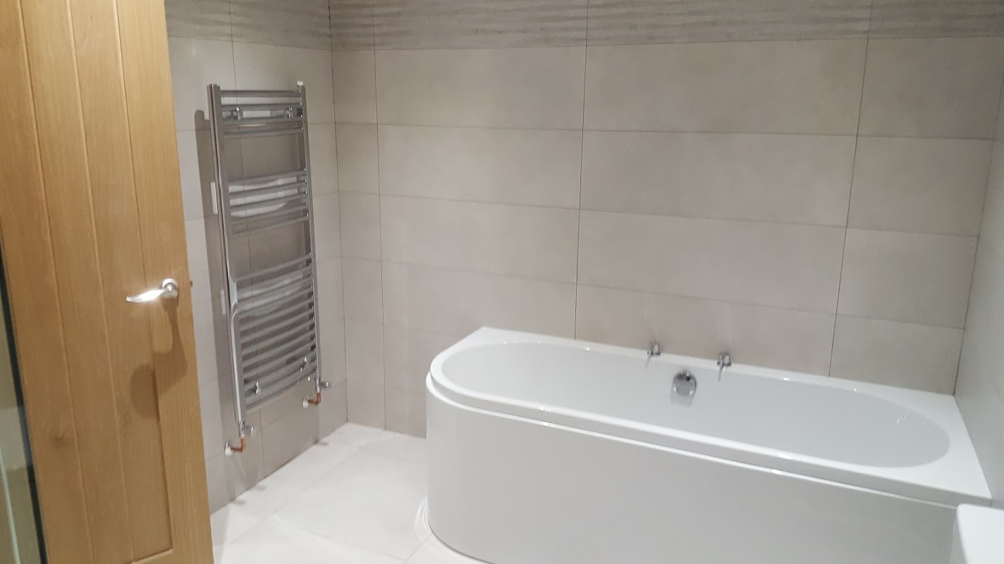A brand new bathroom installed in a new extension to a house in Woolton, Liverpool.